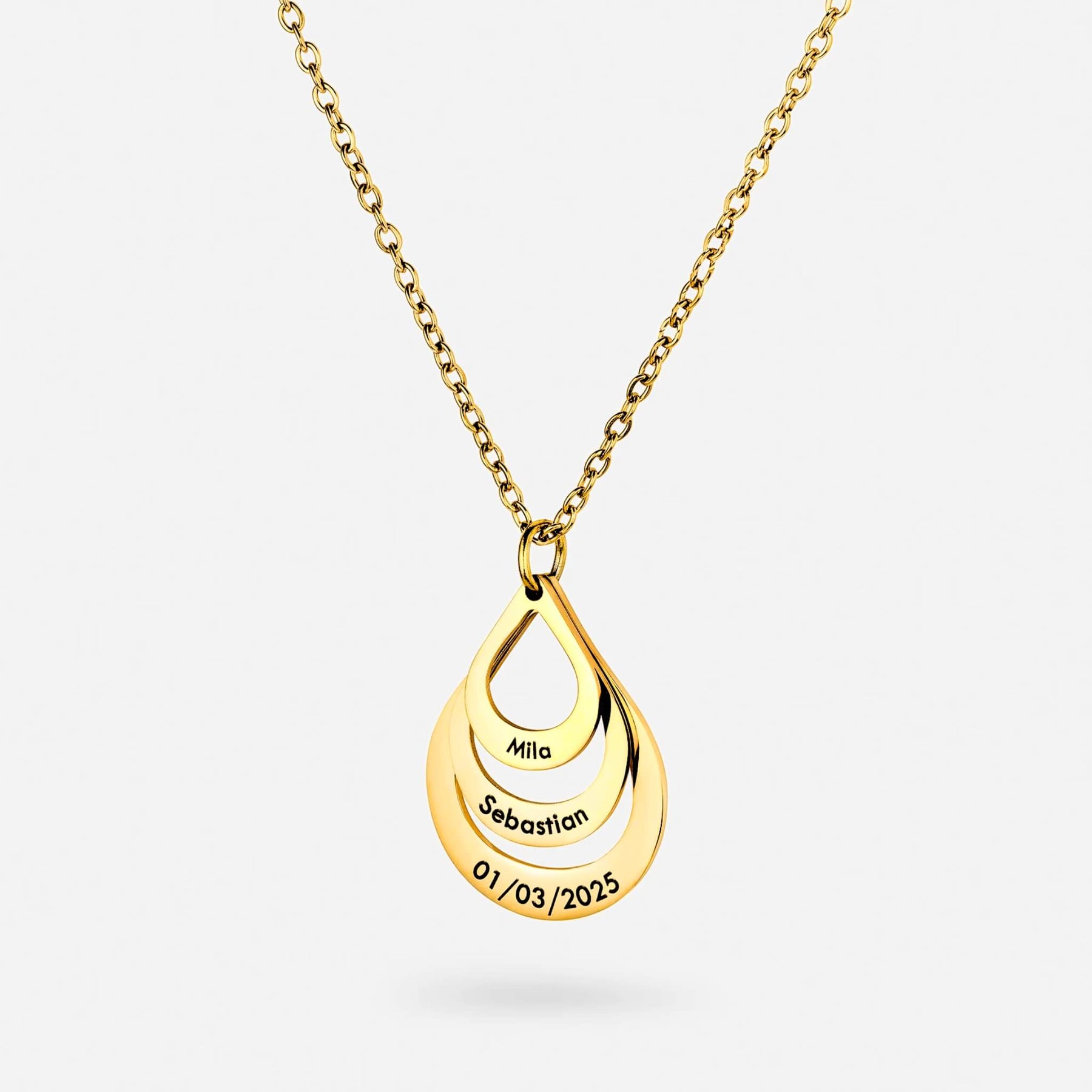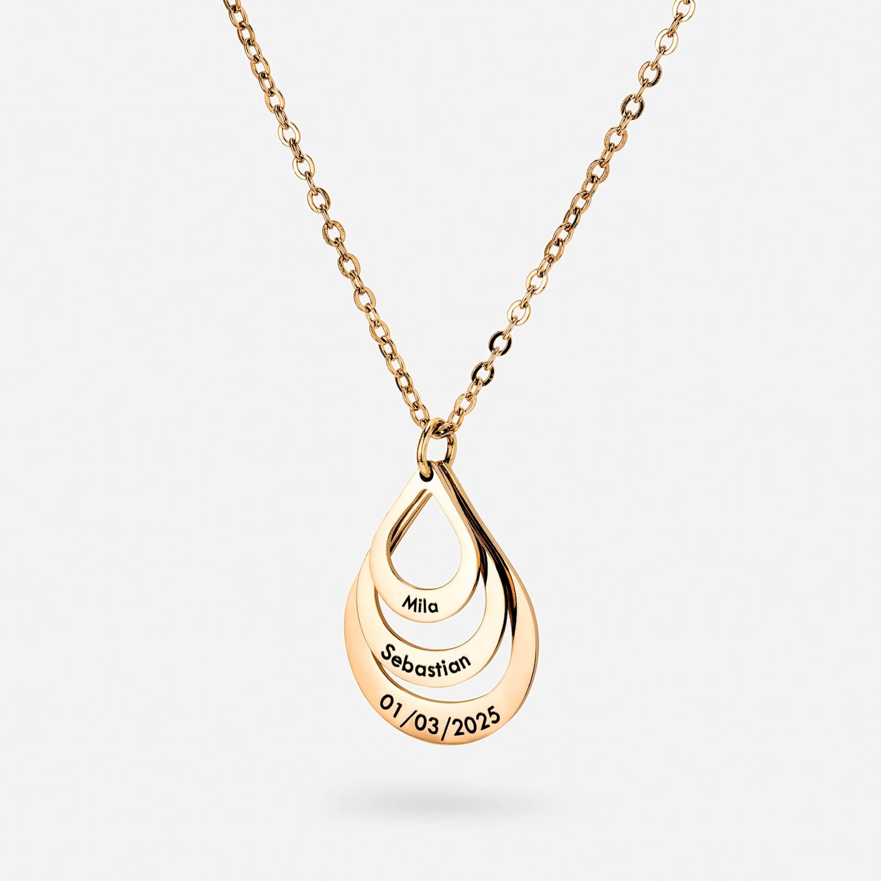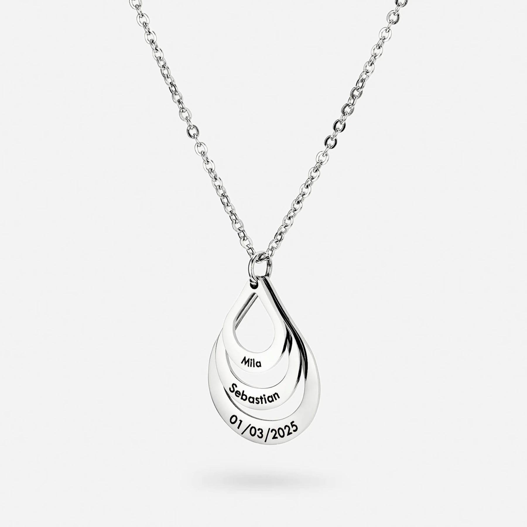Se třemi přívěsky ve tvaru kapky nabízí prostor pro 1–3 gravírování – zachycení vašich dětí, milovaných osob nebo významných dat v jednom elegantním šperku.