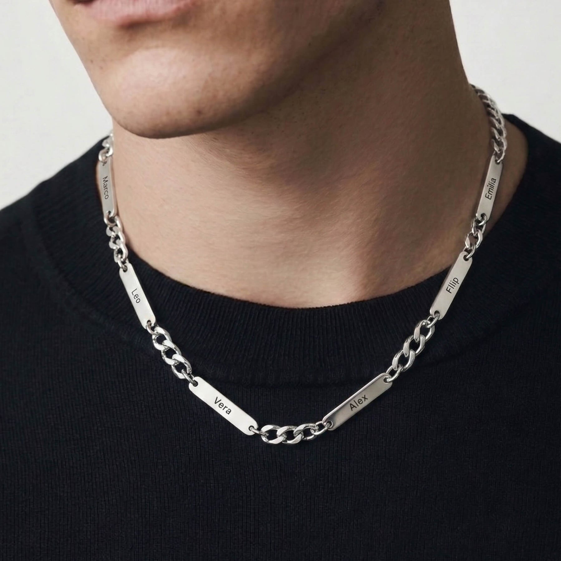 Každý plíšek lze vygravírovat jménem, datem nebo slovem – jemný způsob, jak mít to nejdůležitější vždy nablízku. Vhodný pro každodenní nošení, spojuje výrazný design s hlubokou osobní hodnotou.